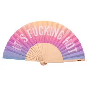 Når sola går ned, men svetten NEKTER: inn på scenen kommer vår pastellfargede *glow in the dark* håndvifte med teksten *IT’S FUCKING HOT*. ![]()